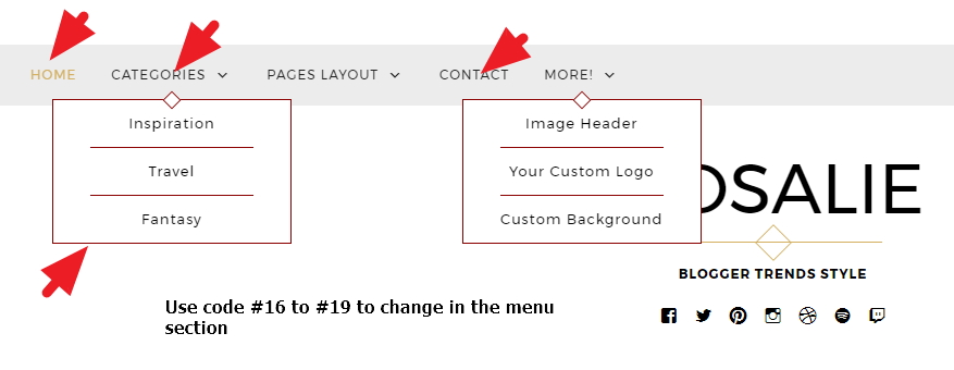 Rosalie By SiloCreativo : Modification of header, footer, borders, backgrounds, fonts,contents, colors and more