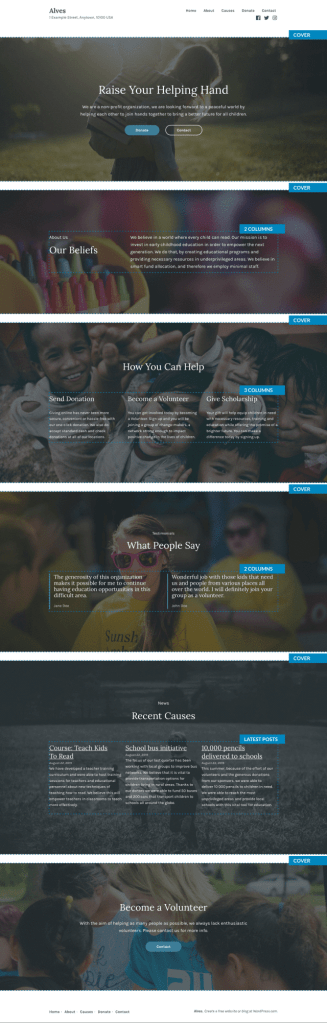 Convincing design for your charity or organization’s online presence. Highlight your actions, causes and projects, Alves is versatile enough to be your personal site too.