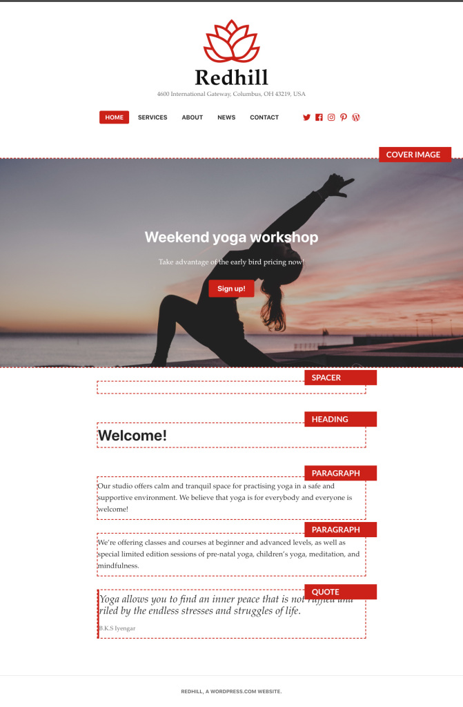 Redhill is a simple theme with clean typography, created with entrepreneurs and small business owners in mind.