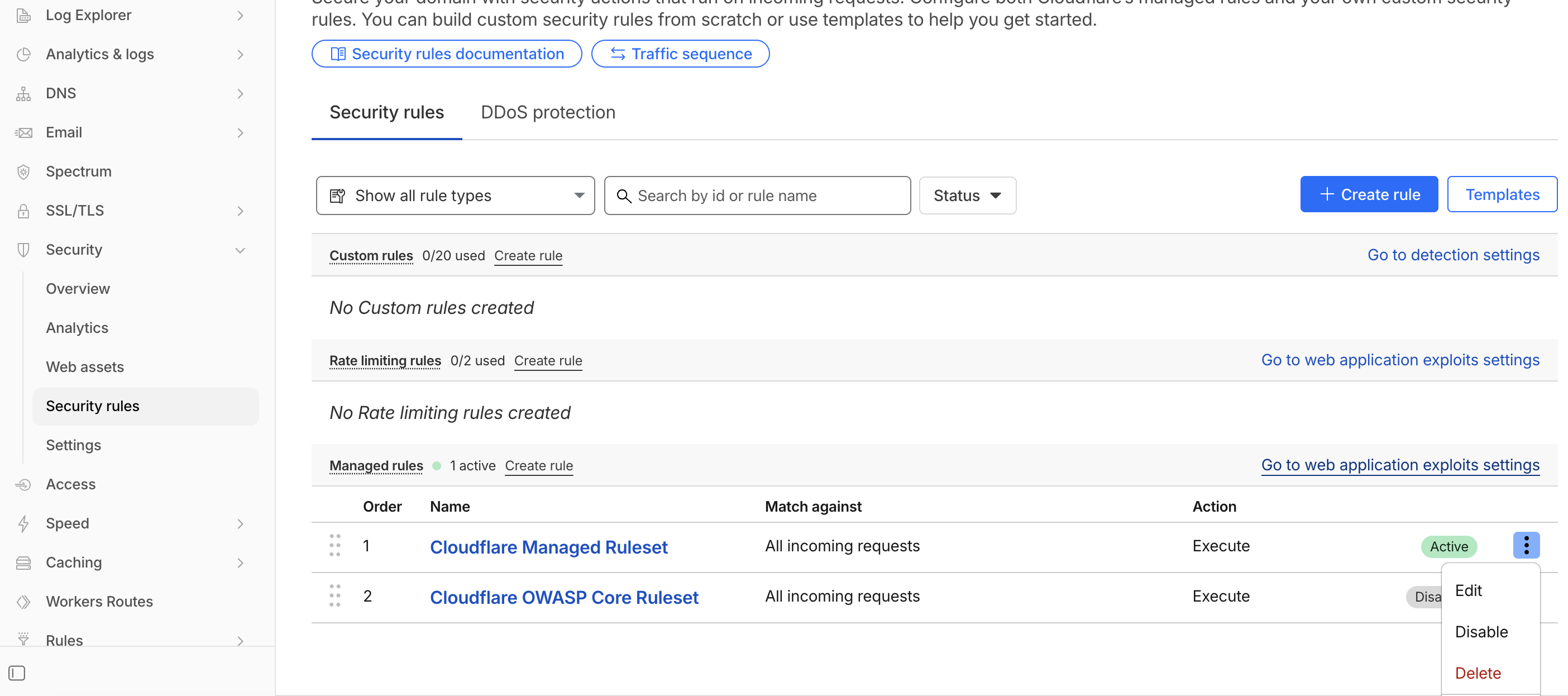 I checked cloudflare dashboard and found under Security > Security Rules page, at the bottom there is Cloudflare Managed Ruleset which was showing active ( screenshot below)
